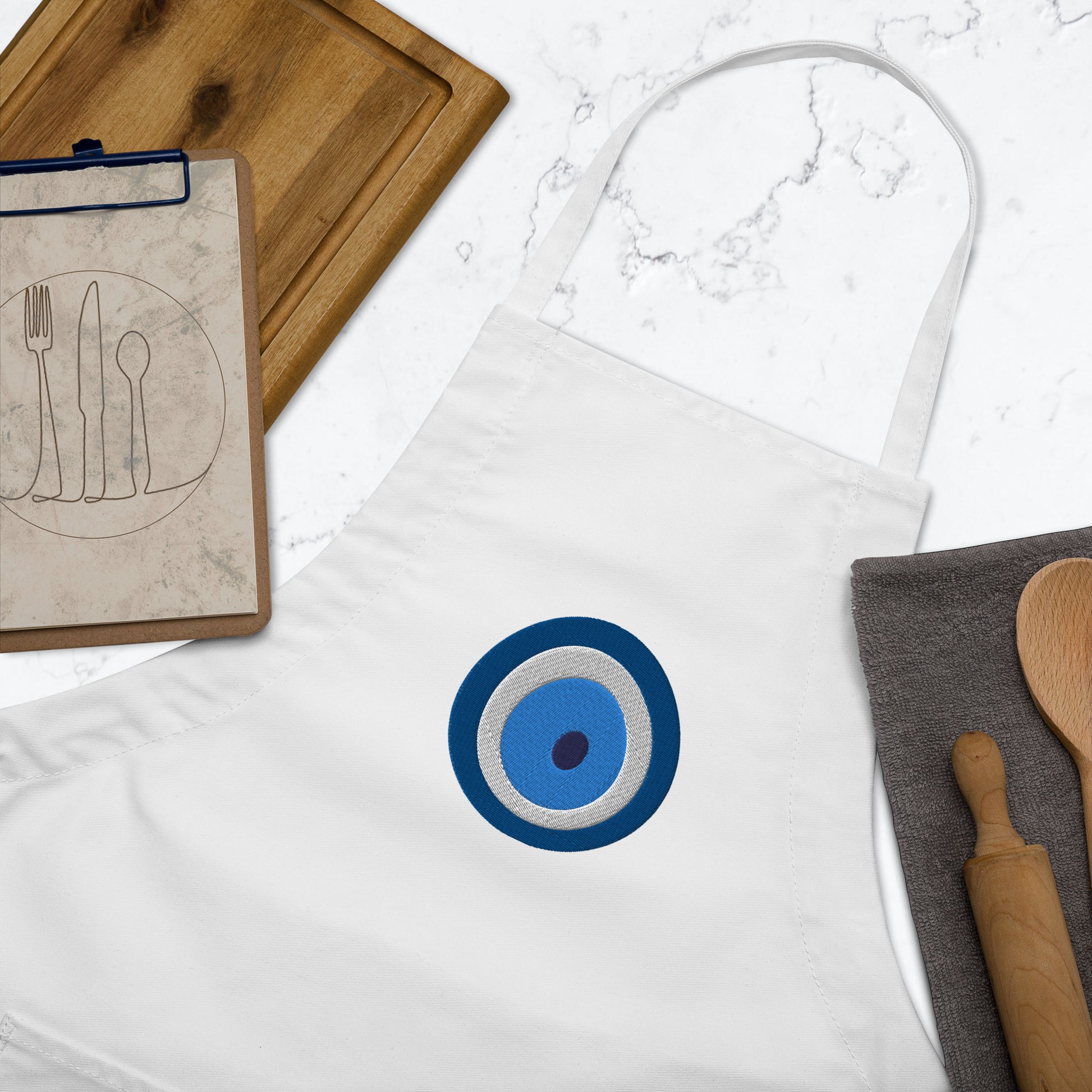 Thanks to this beautifully Greek Mati embroidered apron you don't have to worry about keeping your clothes clean when cooking! The neck loop and long ties, two front pockets, and intricate embroidery in front all come together in an eye-catching and comfy accessory that'll make you long for more time in the kitchen.